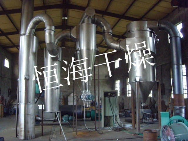氣流干燥機(jī)是大批量的干燥設(shè)備,它采用瞬間干燥的原理,利用載熱空氣的快速運(yùn)動(dòng),帶動(dòng)濕物料,使?jié)裎锪蠎腋≡跓峥諝庵校@樣強(qiáng)化了整個(gè)干燥過程,提高了