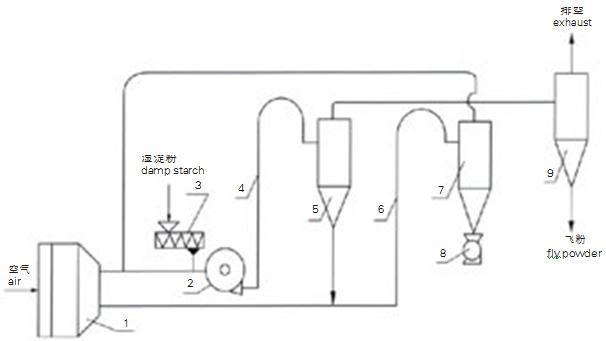 基本型氣流干燥設(shè)備,適用于松散狀、粘性小、成品為顆粒及粉末的物料。此流程示意為負(fù)壓氣流干燥,用戶(hù)可根據(jù)產(chǎn)品特性選擇正壓型式的干燥方法。